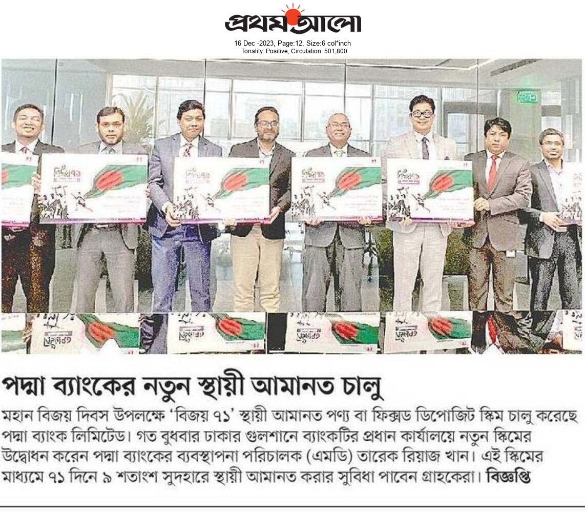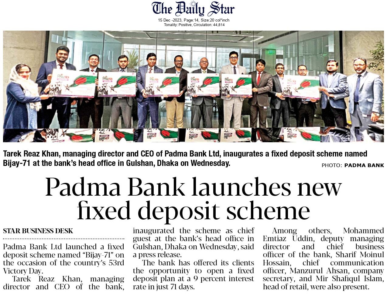 Media coverage on Padma Bank's launching of new fixed deposit scheme "Bijoy 71".
